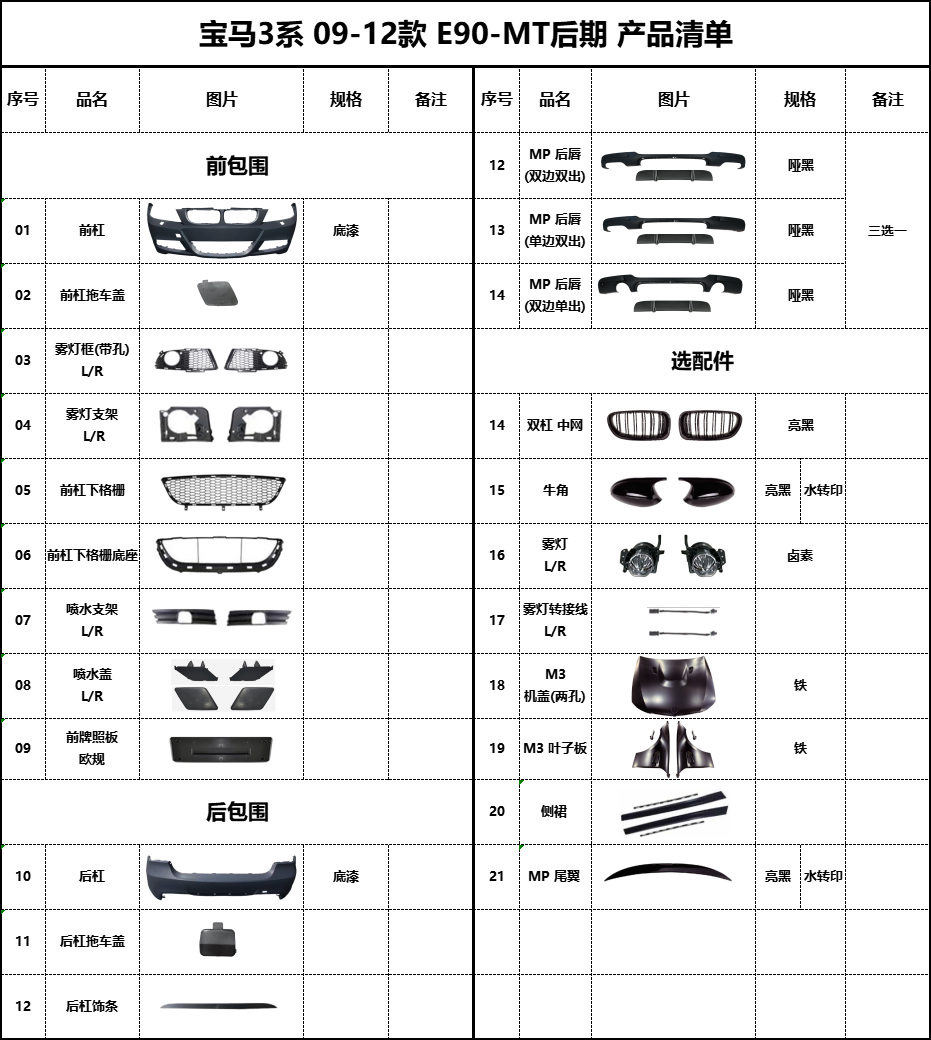 BM-E90-MT Late Product List