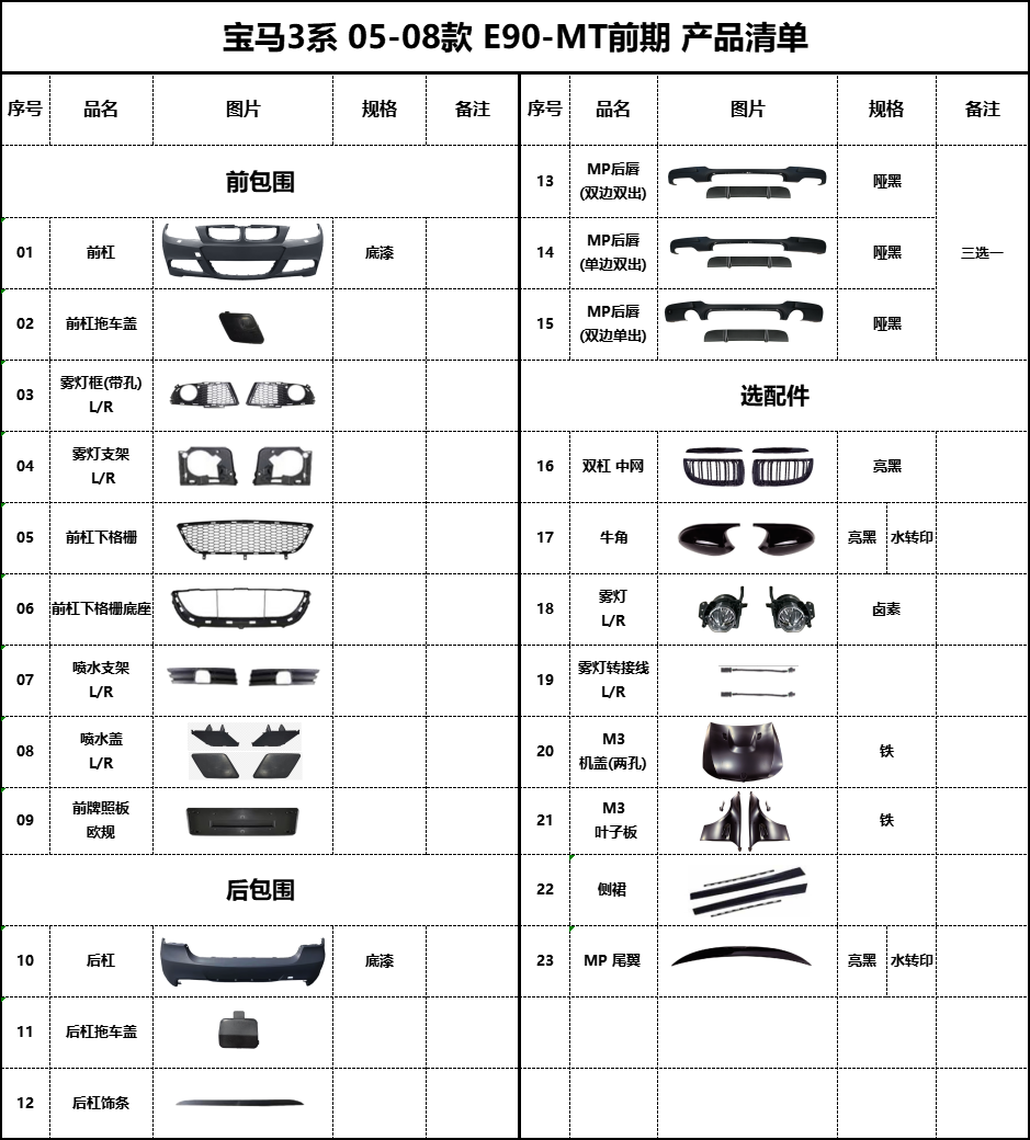 BM-E90-MT later front bumper map
