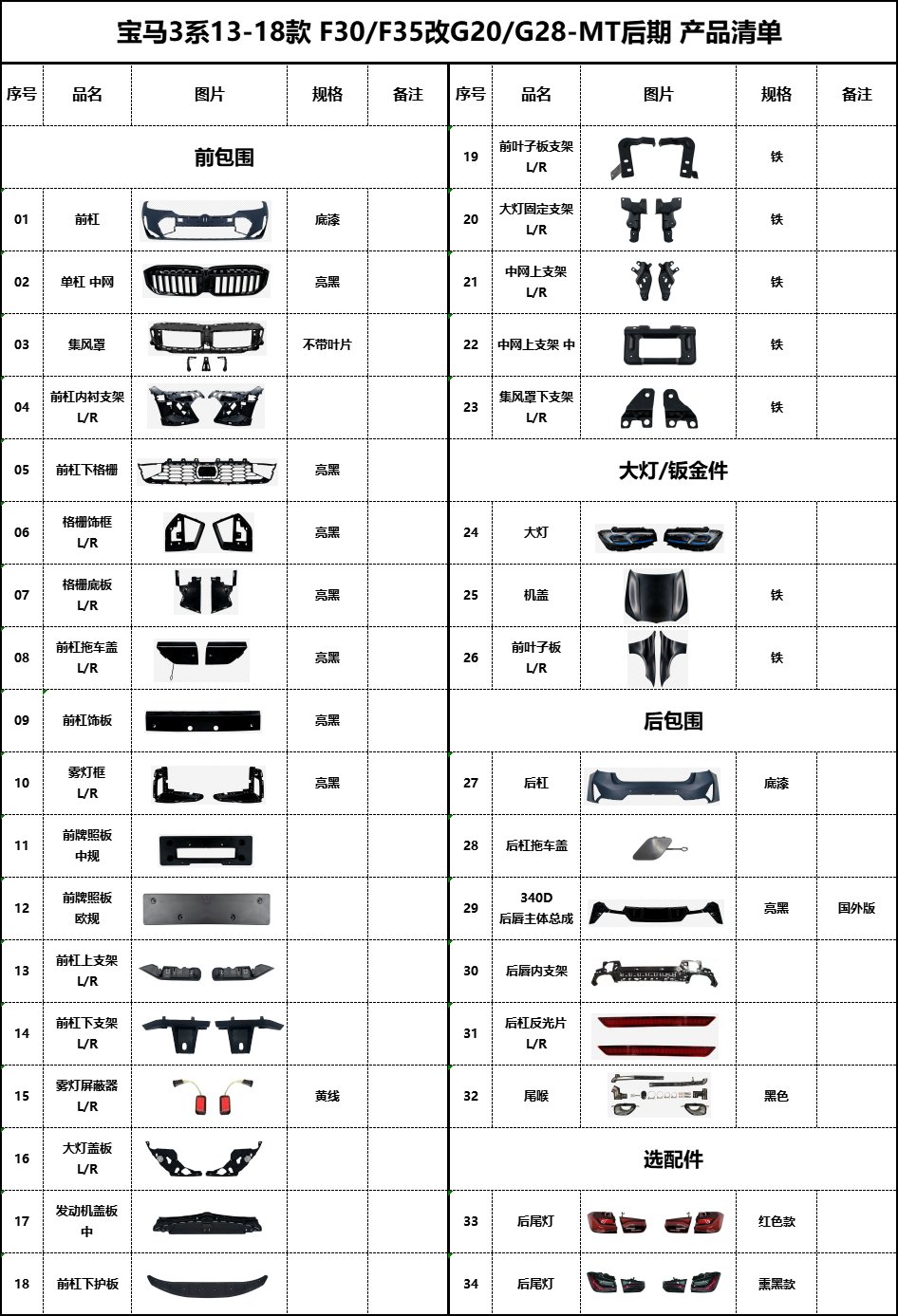 BM-F30F35 modified G20-MT later product list