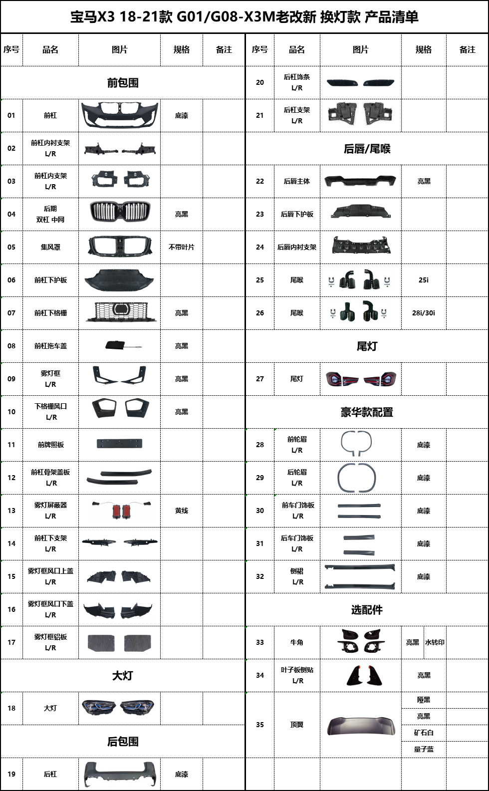 BM-G01 old to new X3M light change body kit (luxury version)