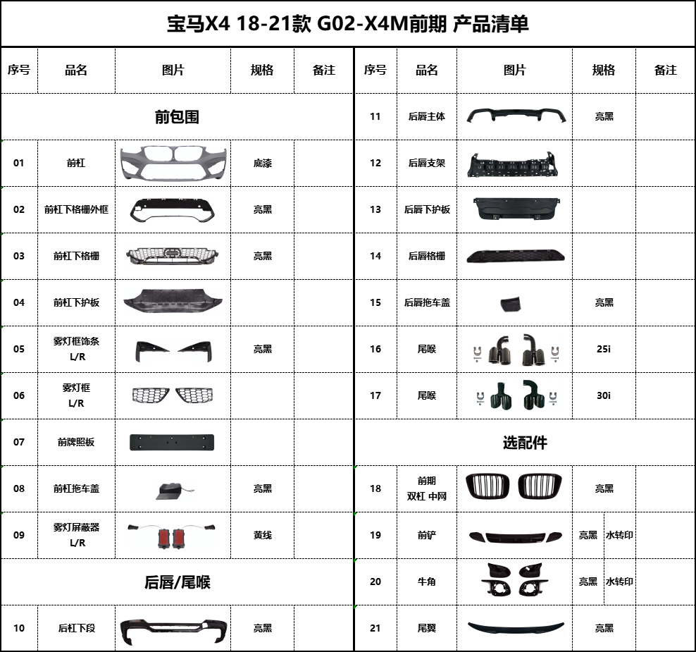 X4-(18-21) facelift (22) X4M (lamp replacement version)