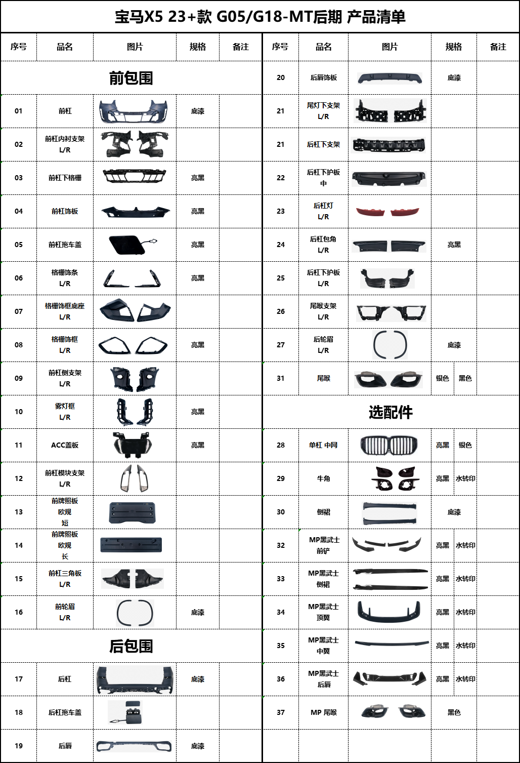 BM-G05-MT Late Product List