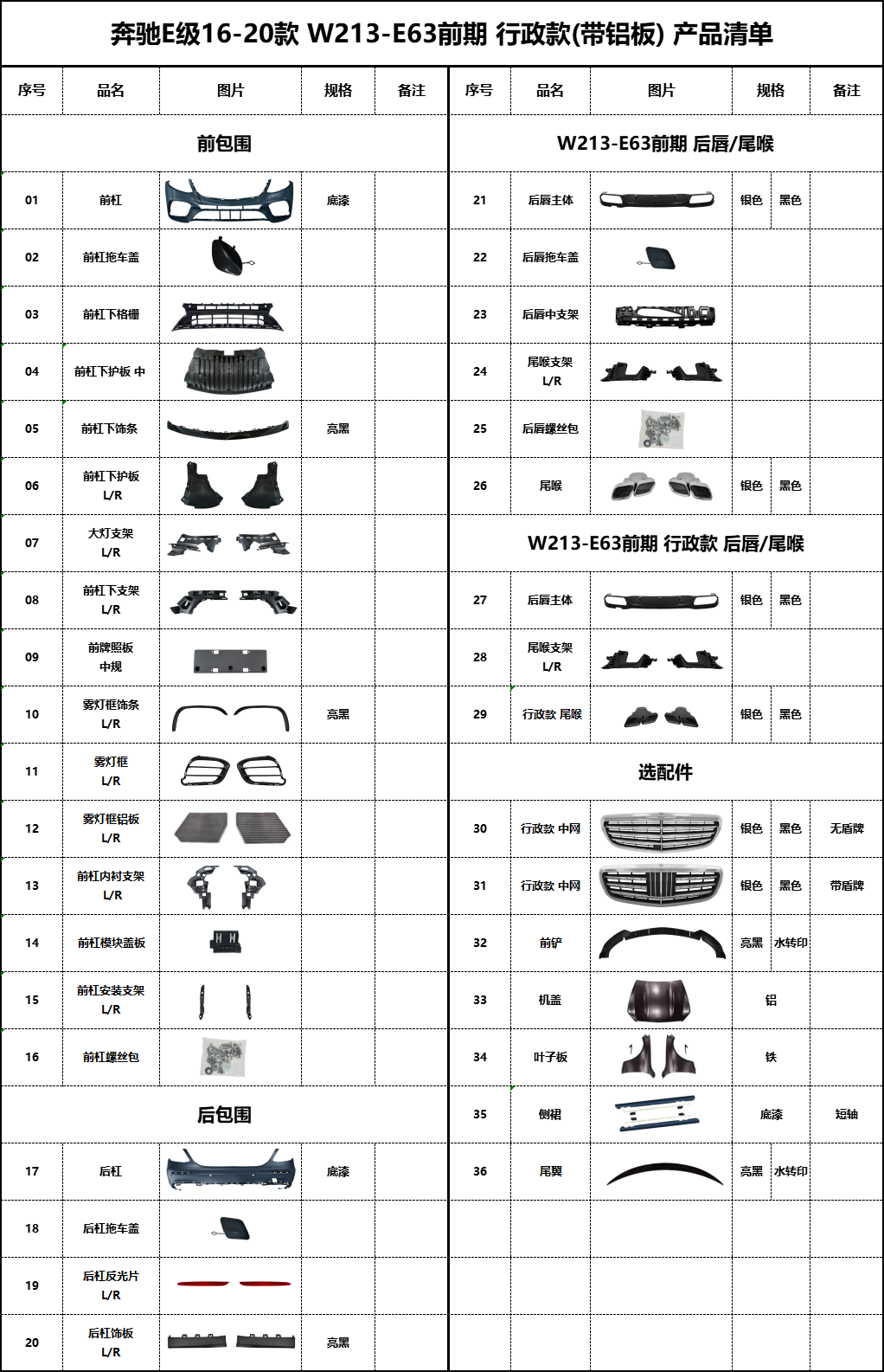 BZ-W213 early executive model-AMG63 body kit (with aluminum plate)