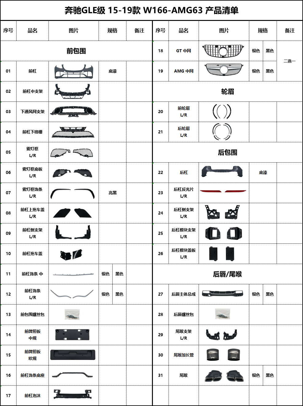 BZ-W166-AMG63 Product List