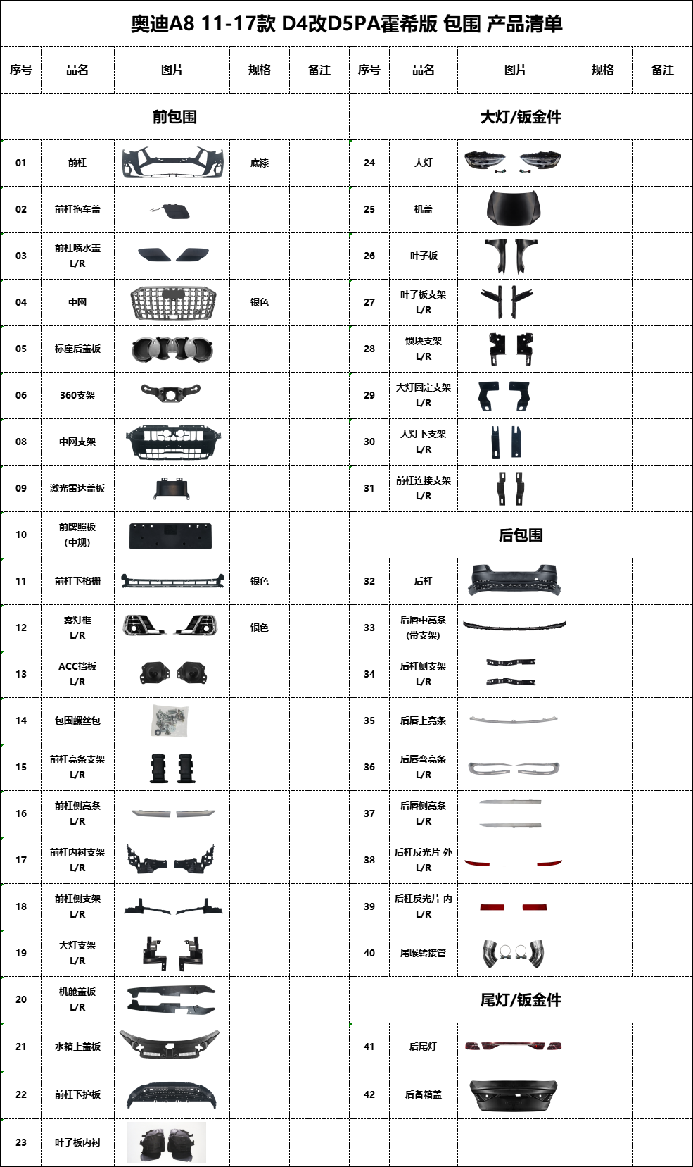 AD-A8-D4 to D5PA Horch Edition Product List